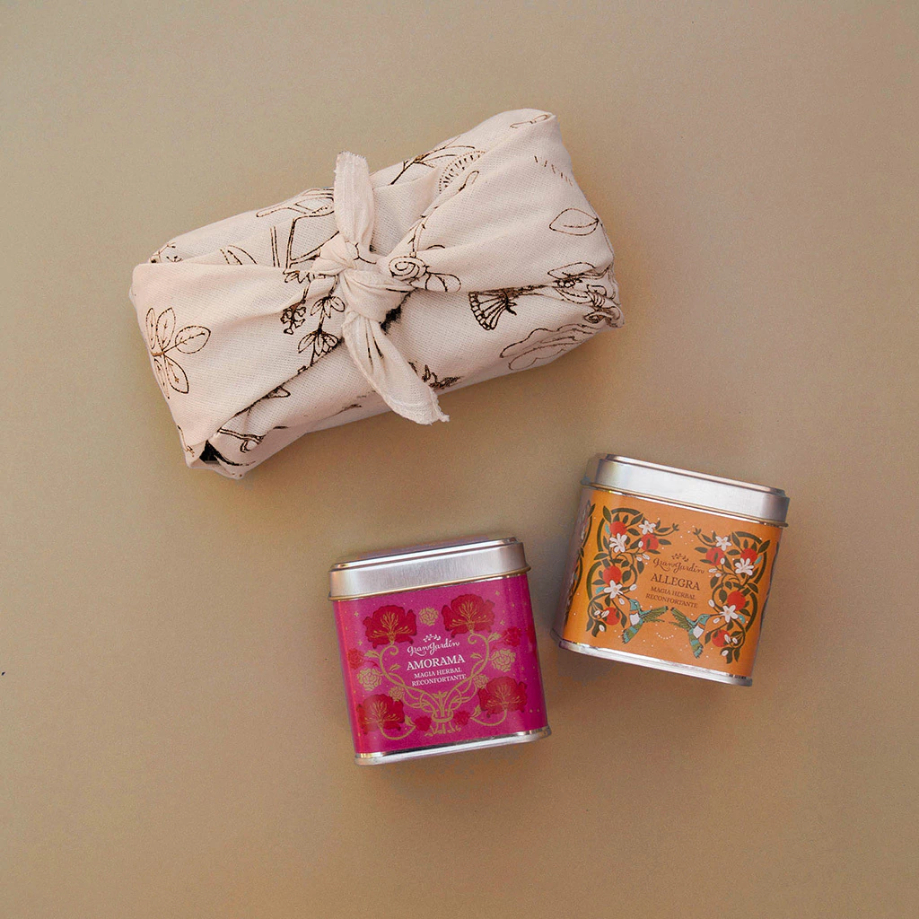 Envuelto al estilo furoshiki.